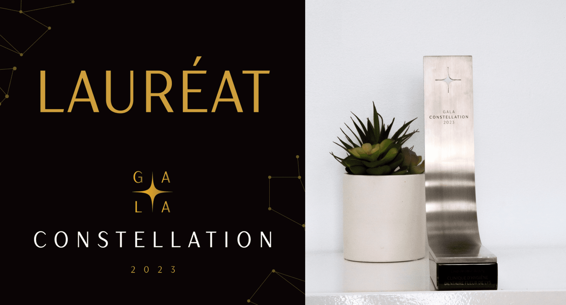 La Clinique d’Hygiène Dentaire - Fleur de Lys a été récompensée avec le Prix Coup de cœur du jury lors du Gala Constellation 2023, organisé par la Chambre des commerces de la grande région de Saint-Hyacinthe.